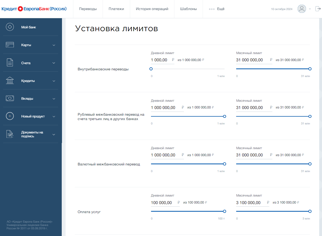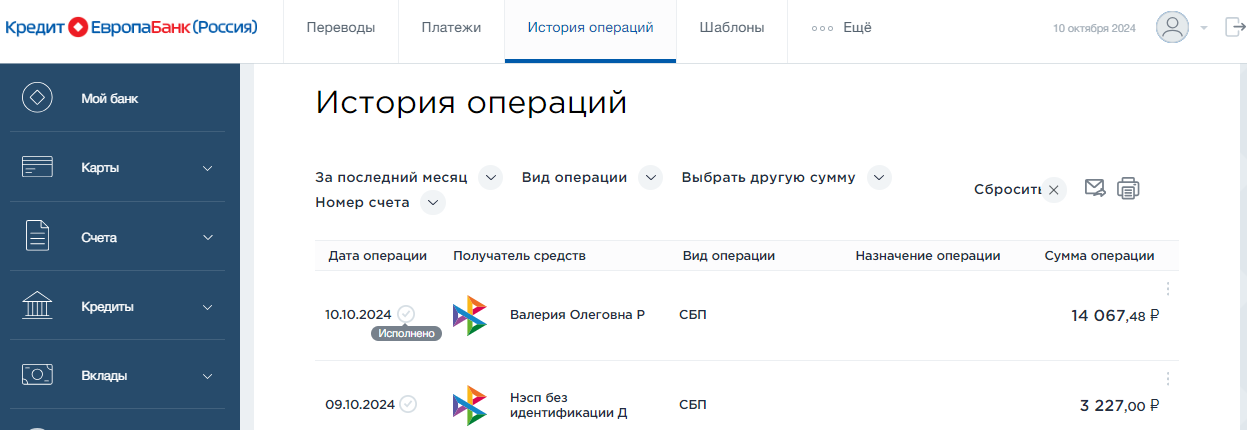 Денежные переводы между картами Кредит Европа Банка зачисляются моментально.