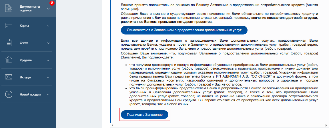 • или в Интернет-банке, если вам доступен раздел «Кредитные предложения» в левом системном меню.