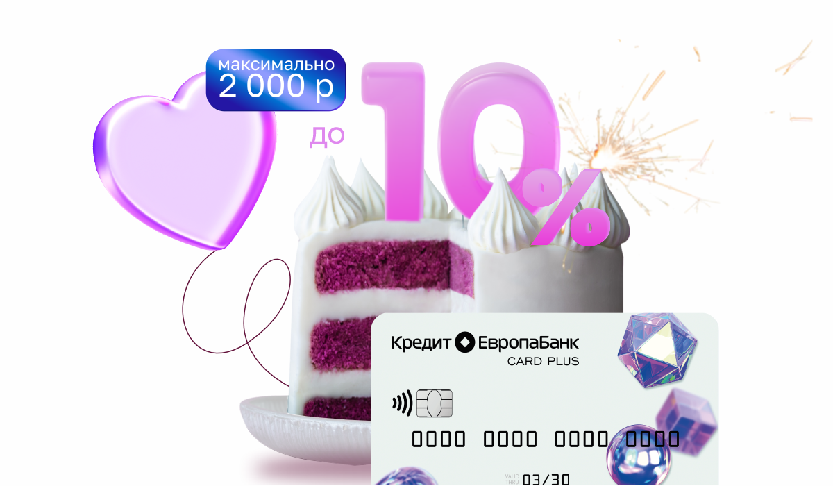 Выплата кешбэк осуществляется в рамках Акции «Праздничный кешбэк - предложение для именинников 8,5% за покупки по дебетовой карте CARD PLUS» для держателей расчётных (дебетовых) карт CARD PLUS, эмитированных АО «Кредит Европа Банк (Россия)».