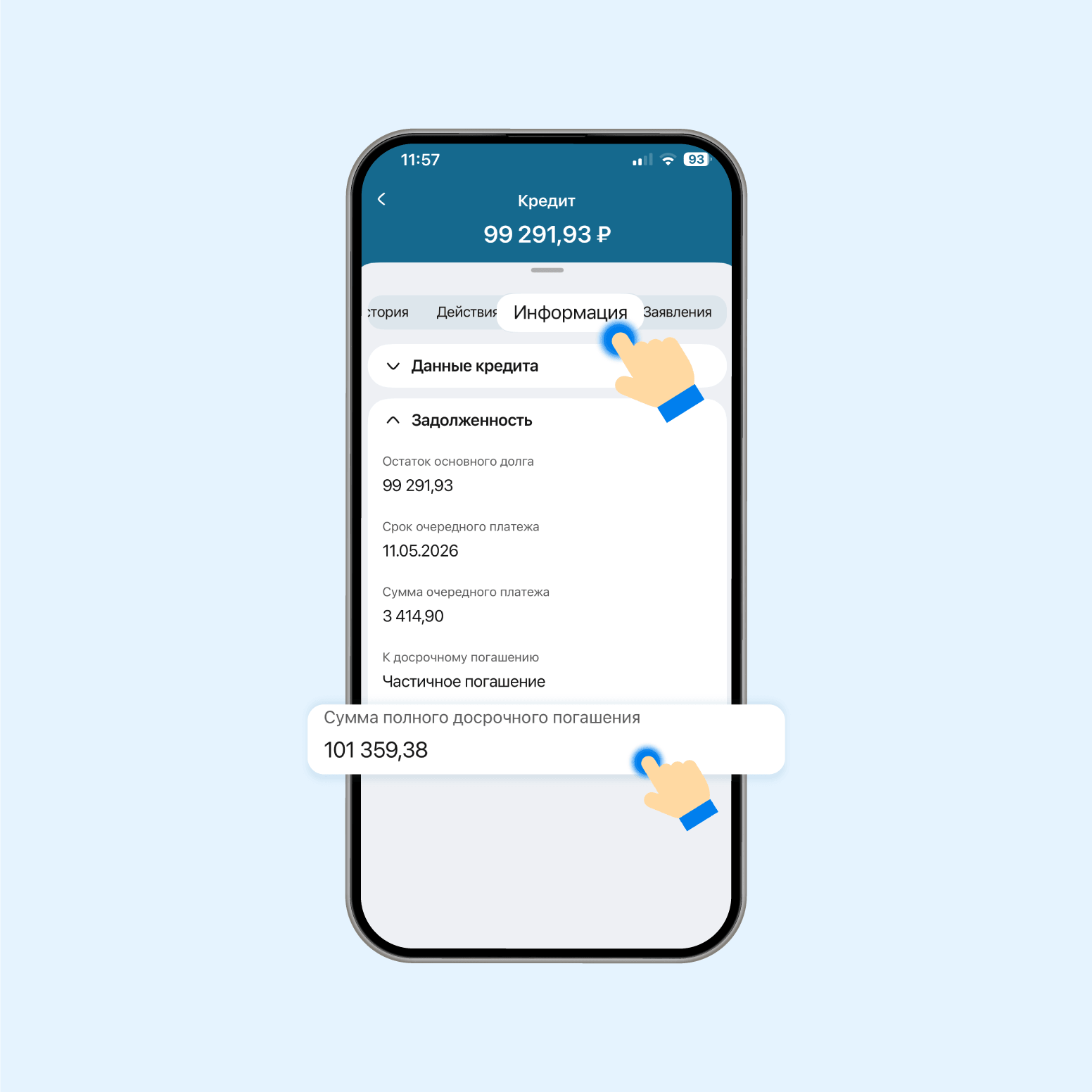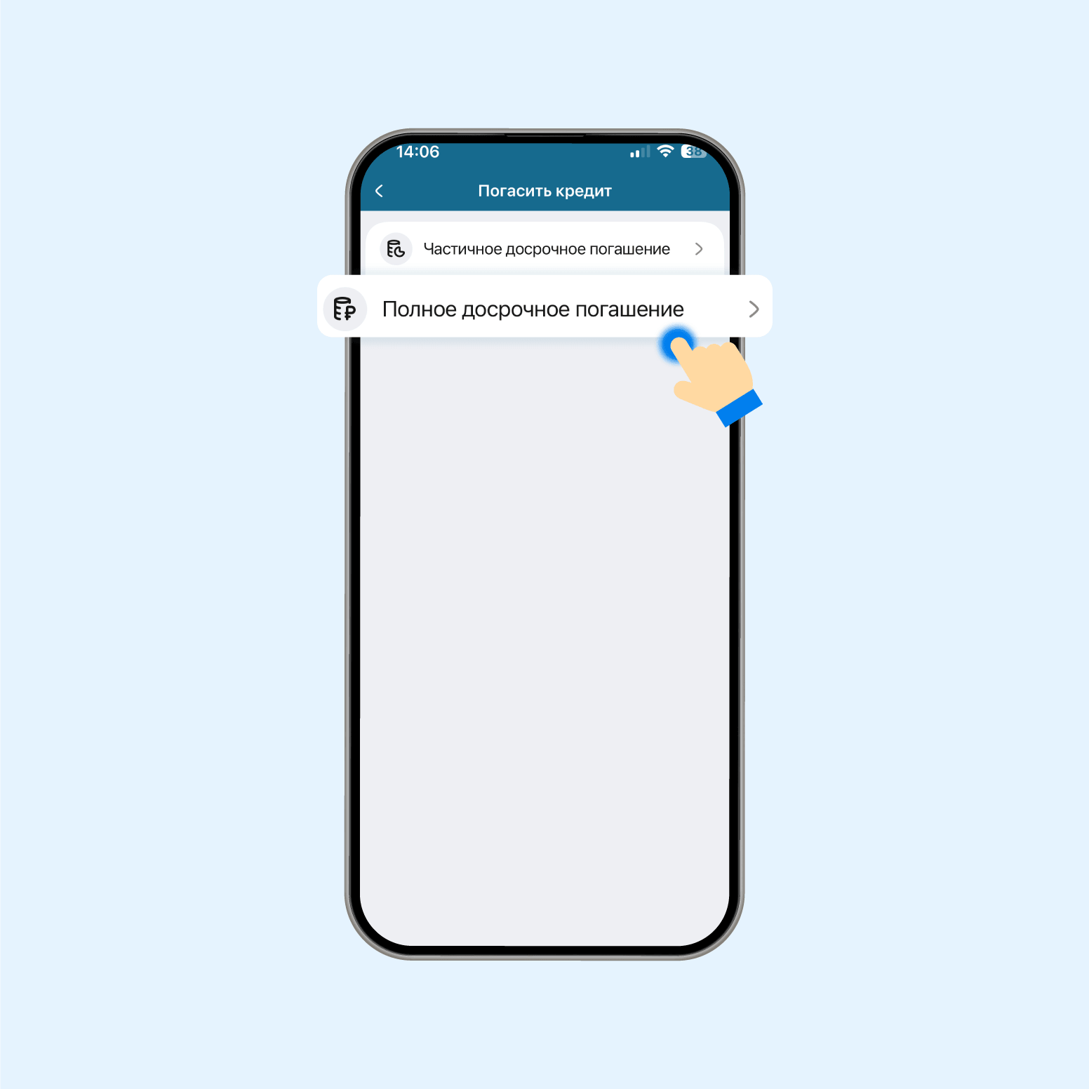 - В Мобильном банке на Главной странице в списке ваших продуктов выберите кредит, который планируете досрочно погасить